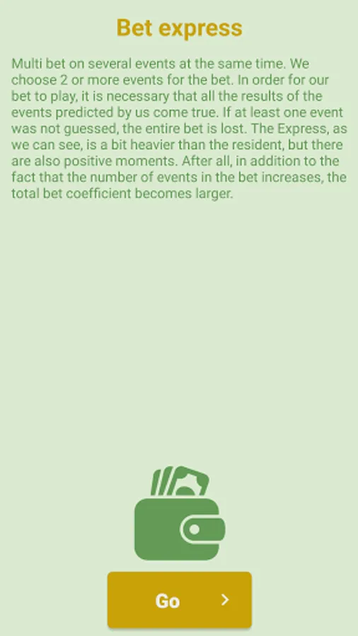 Multi bet on several events at the same time. We choose 2 or more events for the bet. In order for our bet to play, it is necessary that all the results of the events predicted by us come true. If at least one event was not guessed, the entire bet is lost. The Express, as we can see, is a bit heavier than the resident, but there are also positive moments. After all, in addition to the fact that the number of events in the bet increases, the total bet coefficient becomes larger.