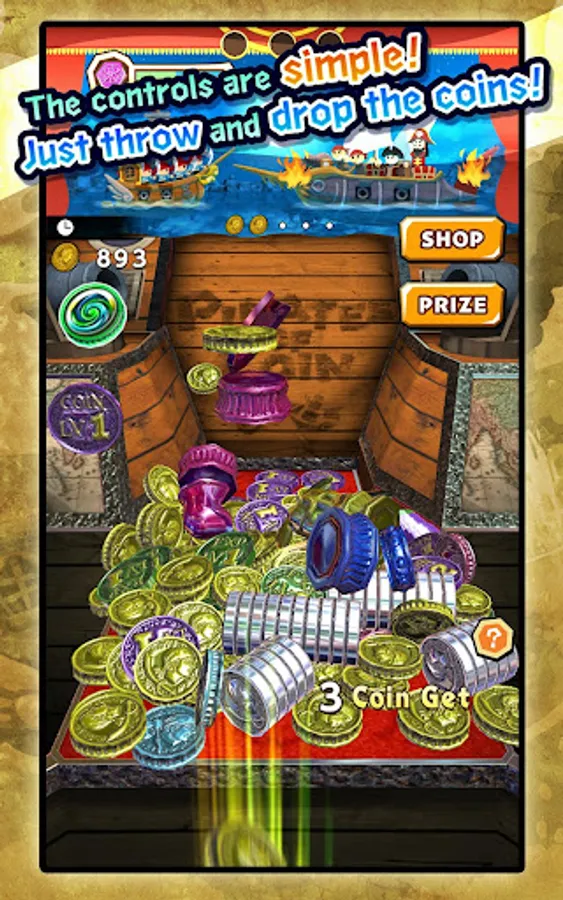 Gain lots of coins and a prize will appear! Aim and shoot at the prize with coins; hit it for a chance to win it.
