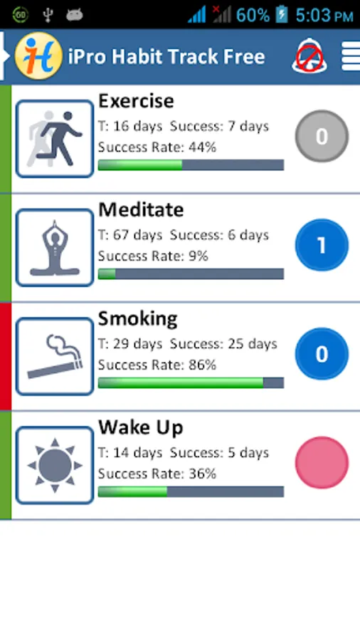 Track your habits and live a more organized life with the brand new iPro Habit Tracker. To track your progress, you need to set measurable goals. Goals can be attained if you have good habits. Whether it is your health, career, business or any personal goal, you can now achieve it by tracking your good habits and making them a part of your routine. With the iPro Habit Tracker, you can track your habits easily which in turn helps you move ahead on the path of progress. It also helps you break your bad habits by helping you mark the habit as negative. It comes with a simple feedback system that lets you decide on any new habits to be followed. It works with minimal clicks and ensures that you do not forget any of your habits.