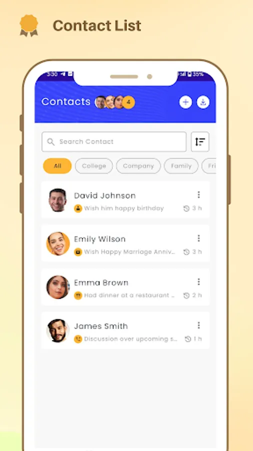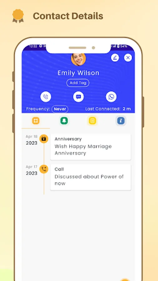 ✴ Notifications: Stay up-to-date with our notification feature. You will receive alerts for upcoming events and other important activities related to your contacts.
