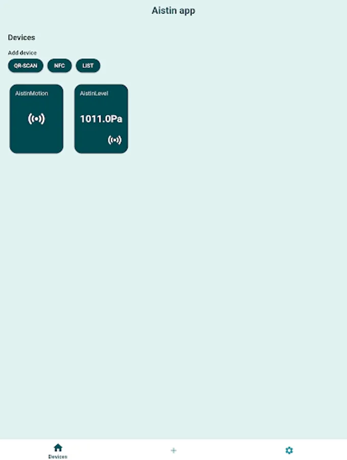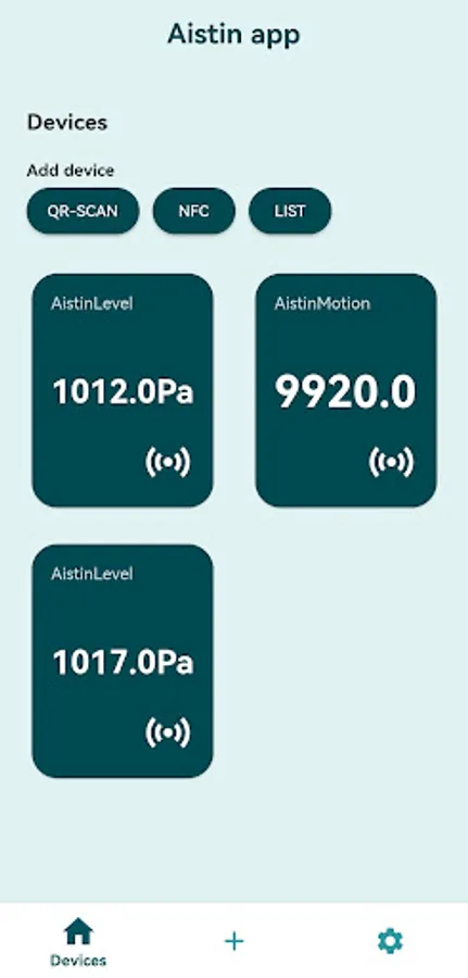 Fetch Device information from the cloud service using a QR code:Just read the QR code with Aistin App you received from the device supplier and device information and measurement data are available on the application desktop. Or you can just select available devices on your device fleet from the list.