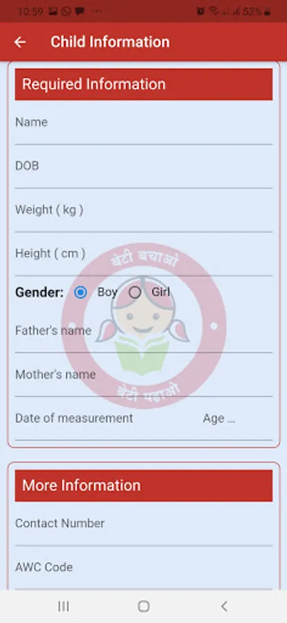 The app aims to help Anganwadi users, Child Development Project Officers and other field level implementers to record, calculate, analyse and/or organize data related to children malnourishment and Body Mass Index. This work is also part of Government initiatives in relation to "Beti Bachao, Beti Padhao Yojana".