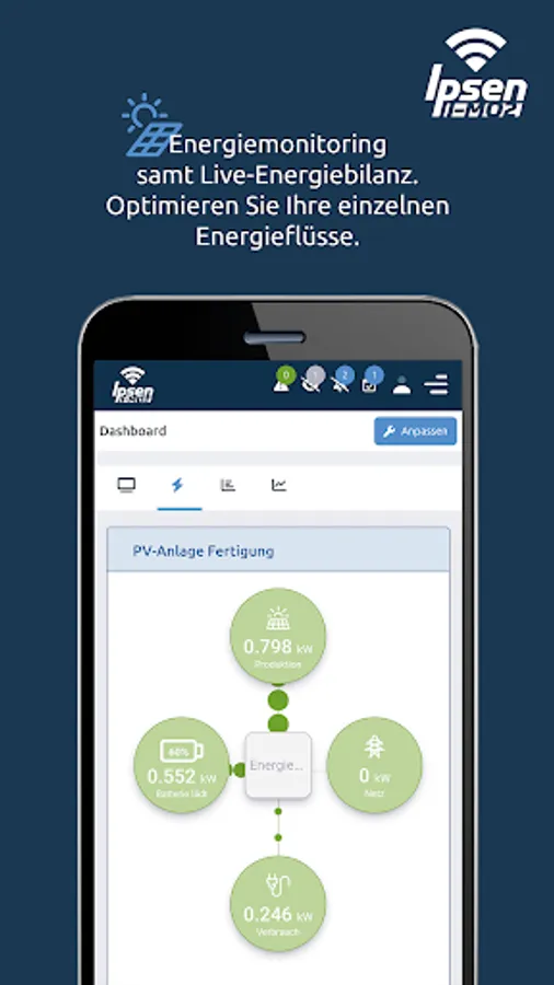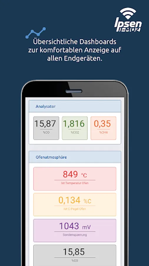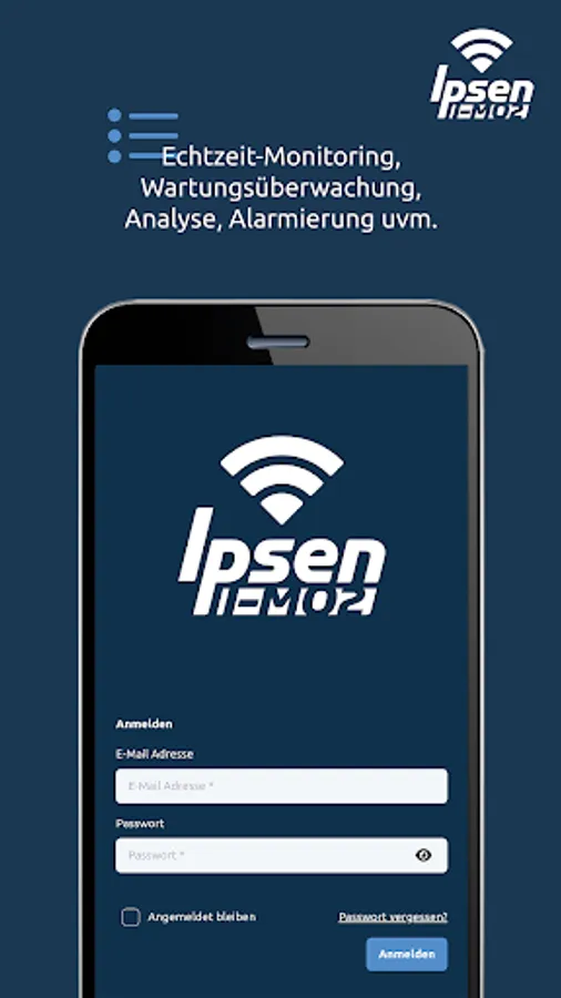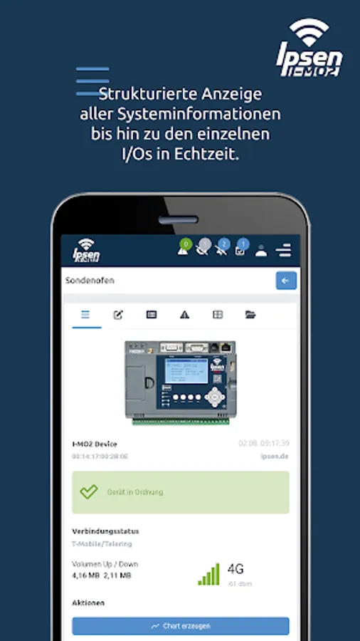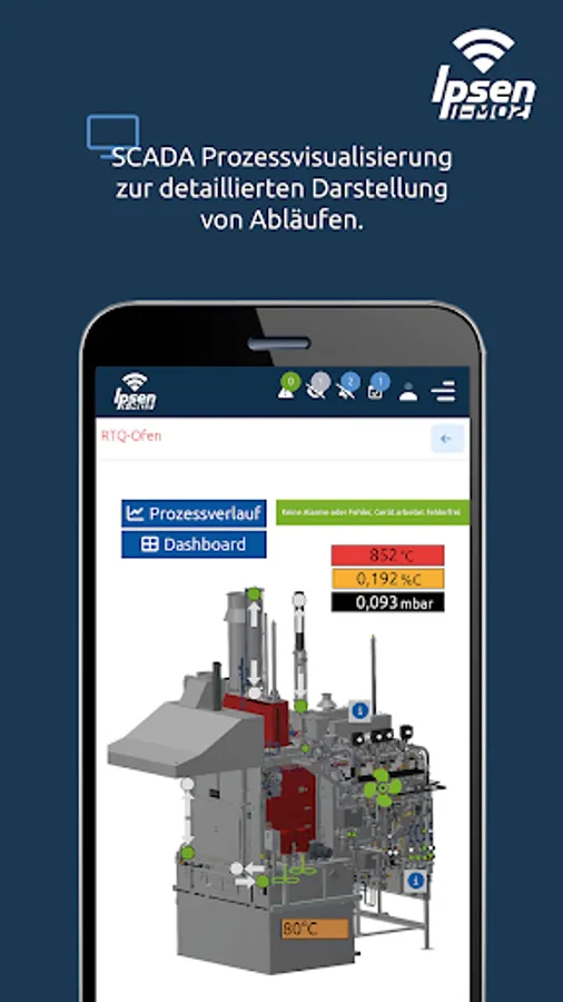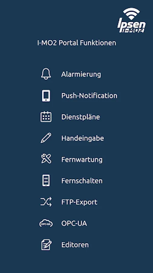 The Ipsen I-Mo App (Ipsen Mobile Monitoring) makes it easier for you to use the Ipsen I-Mo portal on the go. The entire Ipsen I-Mo range of functions is available to you with one click on your smartphone or tablet. Depending on the end device, the display adapts to the possible screen size in a fully responsive manner. This way you always get the best overview and enjoy full functionality on all end devices.