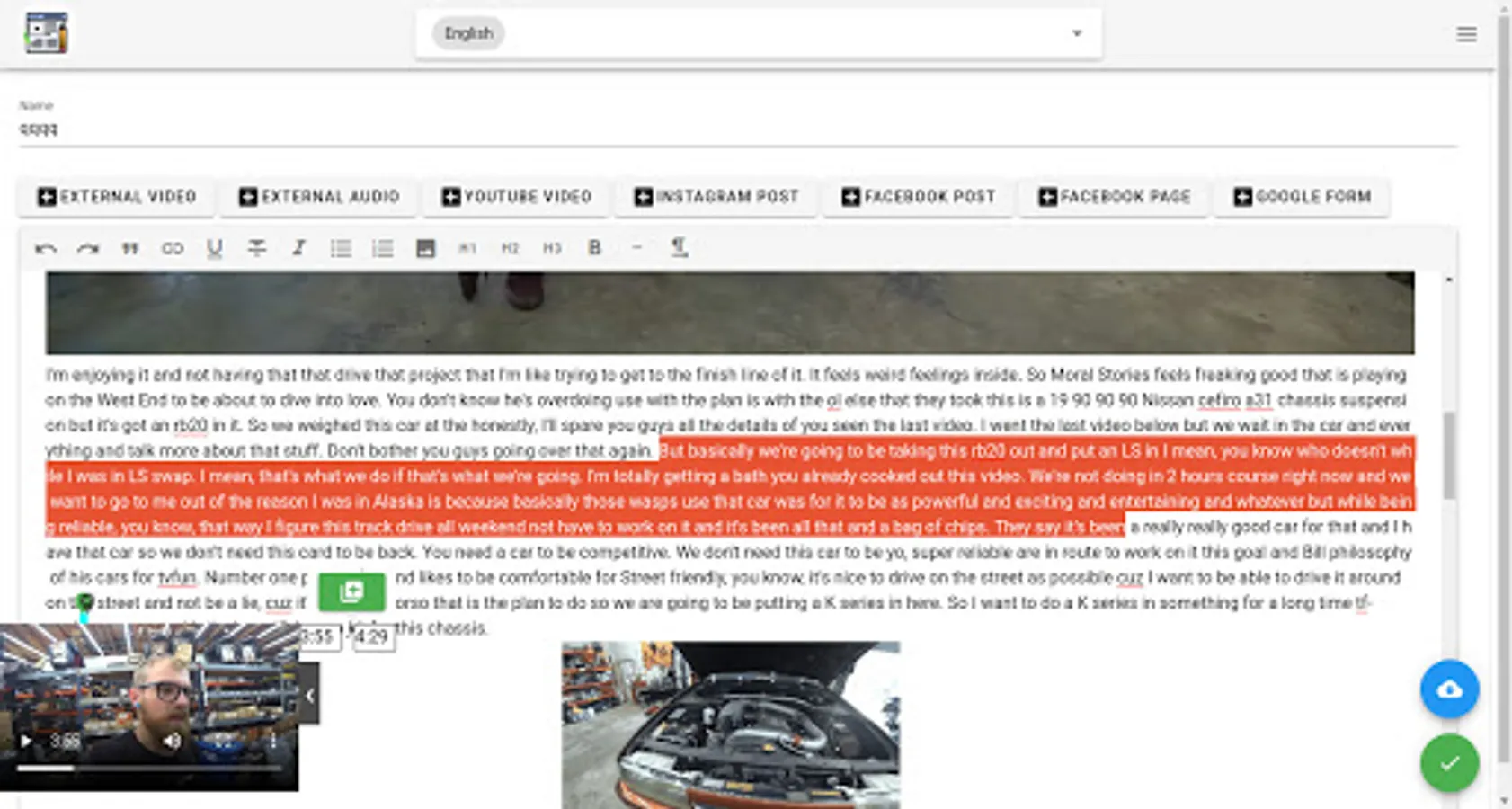 convert any video or audio resource into a Wordpress post, html, pdf or word document!.