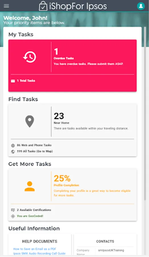 • Register as an iShopFor Ipsos Mystery Shopper and complete your profile