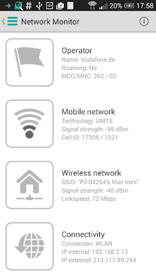 • Network Monitor: What kind of internet connection do you have right now? What is the quality of the connection and what is your IP address?