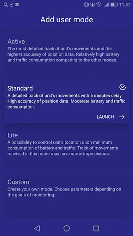 The application supports choosing a user mode from preset ones or creating your own with settings depending on the goals of monitoring. A wide range of settings available allows receiving accurate data while reducing traffic and battery consumption.