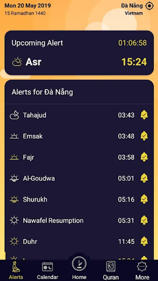 • Special prayer-related alerts (Tahajud, Al Gouwda and Emsak) with the recitation of relevant verses from the Holy Quran