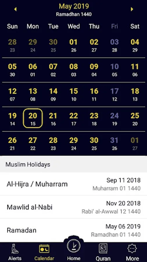 • Dual Calendar Display (Hijri & Gregorian calendar)