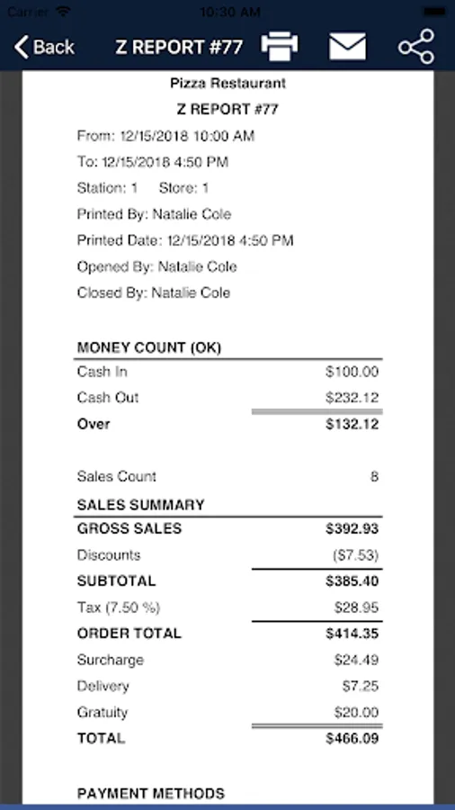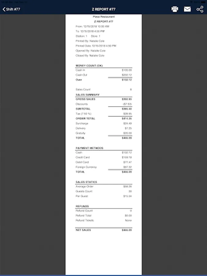 IPT Point Of Sale: If a shift is closed, the cashier would send this data to your email. Access sales data anywhere with IPT Reports app.