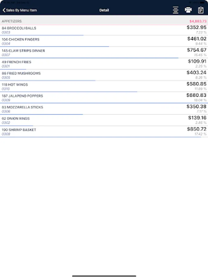 End Of Shift: displays information regarding the sales statics such as: Sales Count, Gross Sales, Total, Average Order.