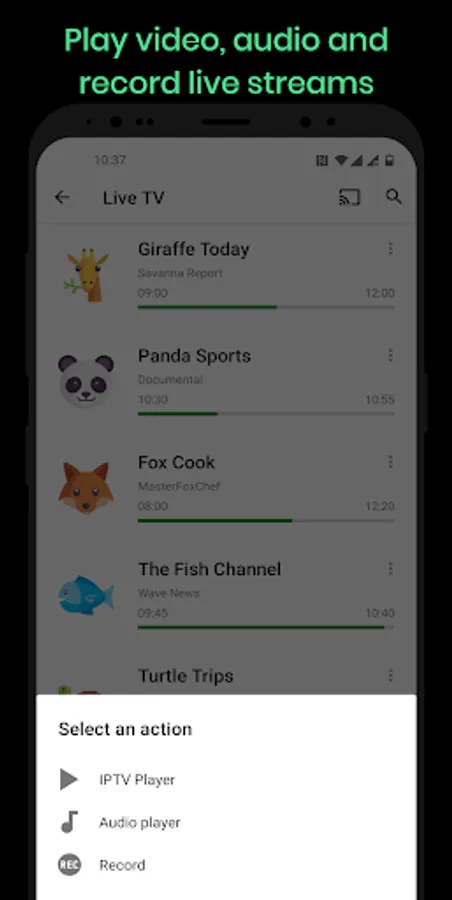 ⚡ Save your favorite channels, record live streams or send content to Chromecast. Dimplay is designed for you, please give us feedback to keep improving.
