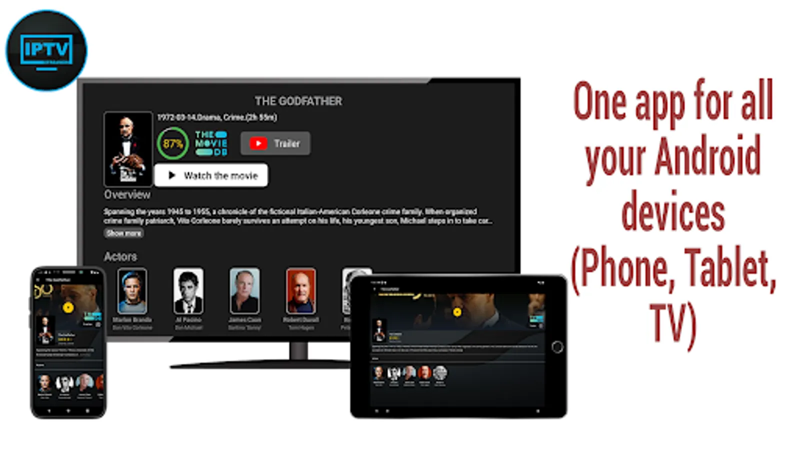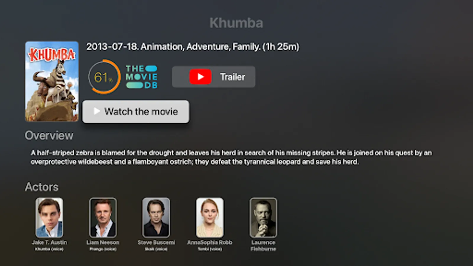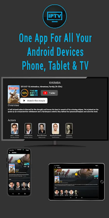 - View details of movies and TV series: Actors, categories, votes, trailers. Directed by "themoviedb".
