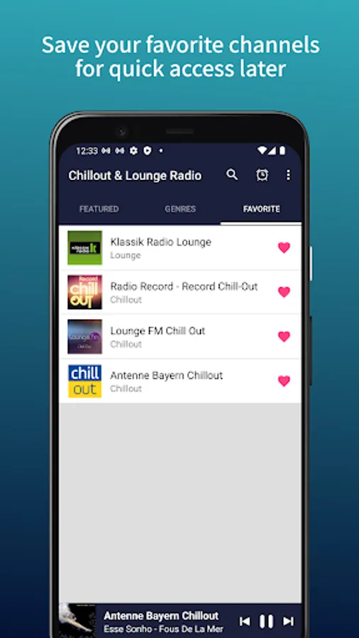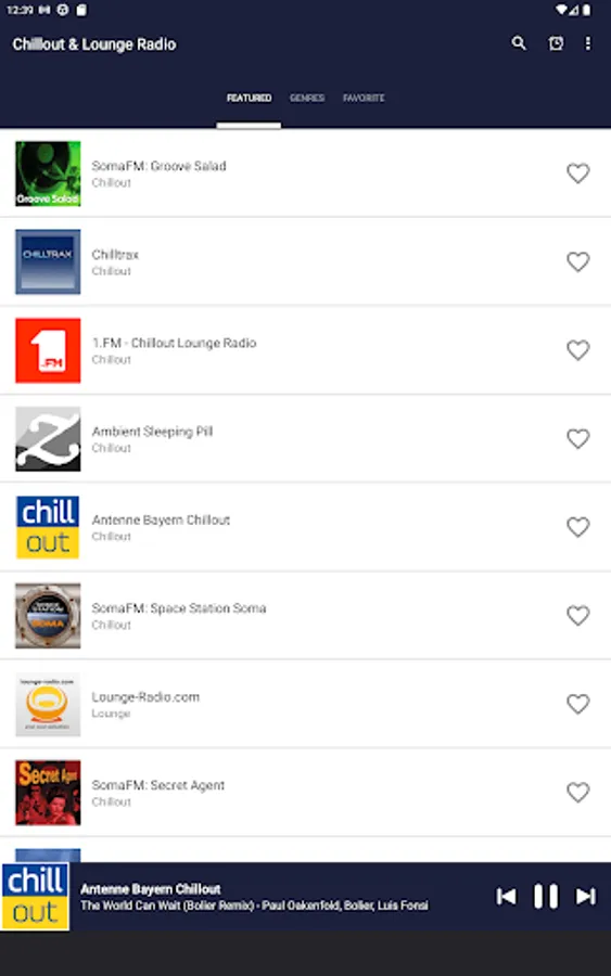 Chillout & Lounge Music Radio is the ultimate app for anyone looking to unwind and relax to the soothing sounds of chillout and lounge music. Whether you're at home, work, or on the go, this app lets you access a curated selection of the best chillout and lounge tracks from around the world. With its user-friendly interface and seamless streaming capabilities, you can easily create your own playlists and enjoy uninterrupted listening. So if you're looking for a way to de-stress and chill out, download Chillout & Lounge Music Radio now and let the music do the rest.