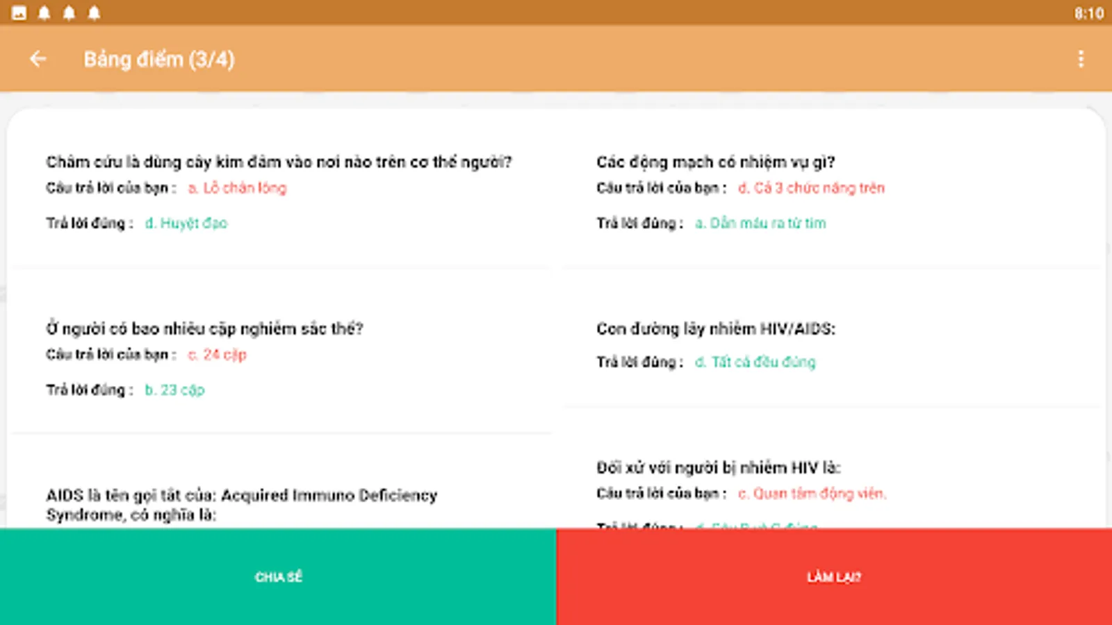 - Internet connection, this is required because the questions are saved on the server, for the convenience of adding questions, correcting mistakes, wrong answers...