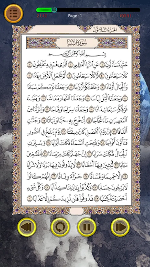 The application contains the three most beautiful readings of this part with the voice of Sheikh Abdul Basit, Al-Muaiqly and Ahmed Al-Ajmi, and the ability to choose the reading before the start