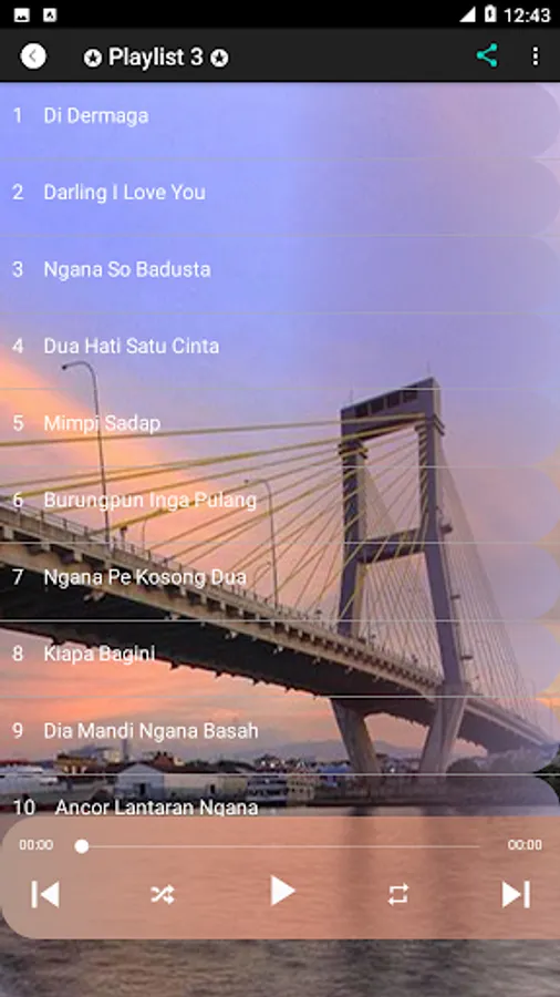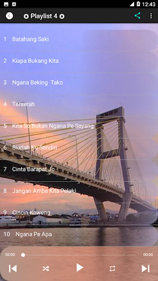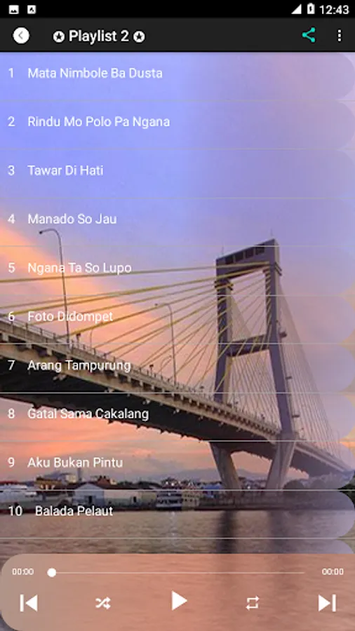 Complete Offline Manado Songs is an application for a collection of Offline Mp3 Manado Song Lyrics. in the Manado Song application, it contains the latest 2023 Manado pop song collection, apart from that the Manado Mp3 Offline Pop application can be played without an internet quota, designed with an attractive appearance, this offline Manado song collection application will make you feel at home playing music for a long time. This Manado Isty Julistri Mp3 song is very light and doesn't eat up your quota, equipped with clear audio quality, the Best Manado Loela Drakel Song application can entertain your day.