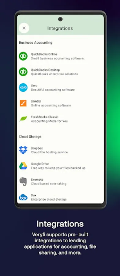 - Accounting: Connects and syncs to QuickBooks (QBO & Desktop), Xero, Sage, Freshbooks & Saasu
