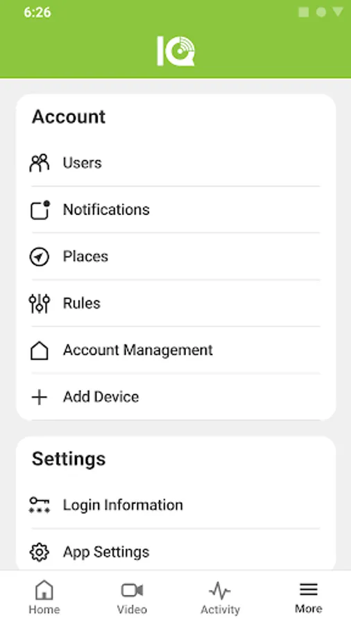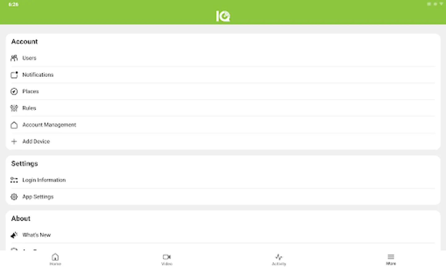 Activate and control your IQ Panel security, life safety and smart home/business with IQ Connect, putting everything in the palm of your hand no matter where you are. Manage your users, remotely activate or deactivate your security system and get notifications about important events, keeping you connected, the smart way.