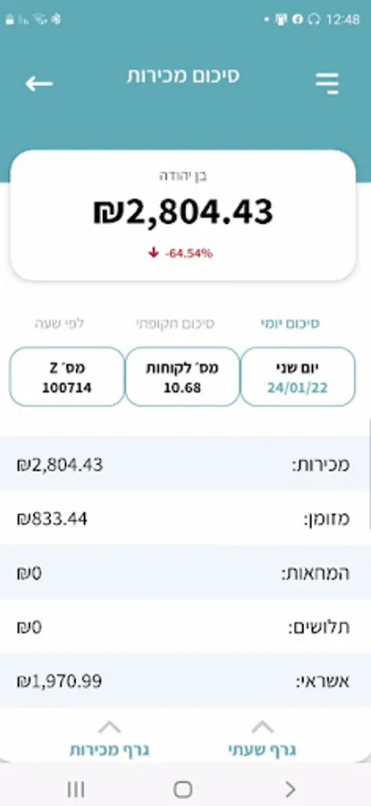 Details of all transactions, distribution by means of payment and hours, comparative reports, production of an Excel report