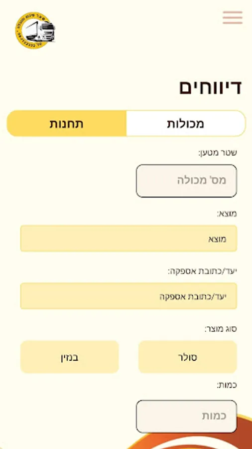 אפליקציה לדיווחי הובלות והזמנות ע"י נהגים