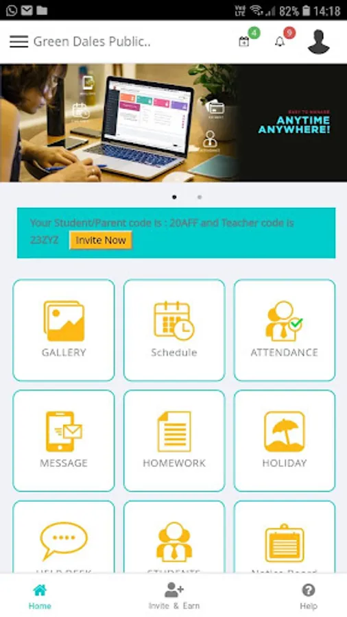 - Help Desk to get help from teacher and admin staff