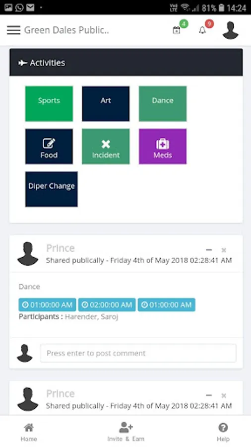 - Activities management like dancing, hand painting, medicine, food and Nappi change, etc