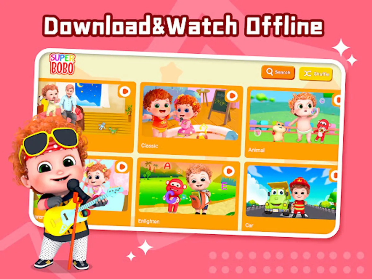 When you connect to WiFi, Nursery rhymes & kids songs will automatically download the best baby rhymes, top children songs, kids cartoons and shows so they can watch the entire series offline (no internet connection needed).