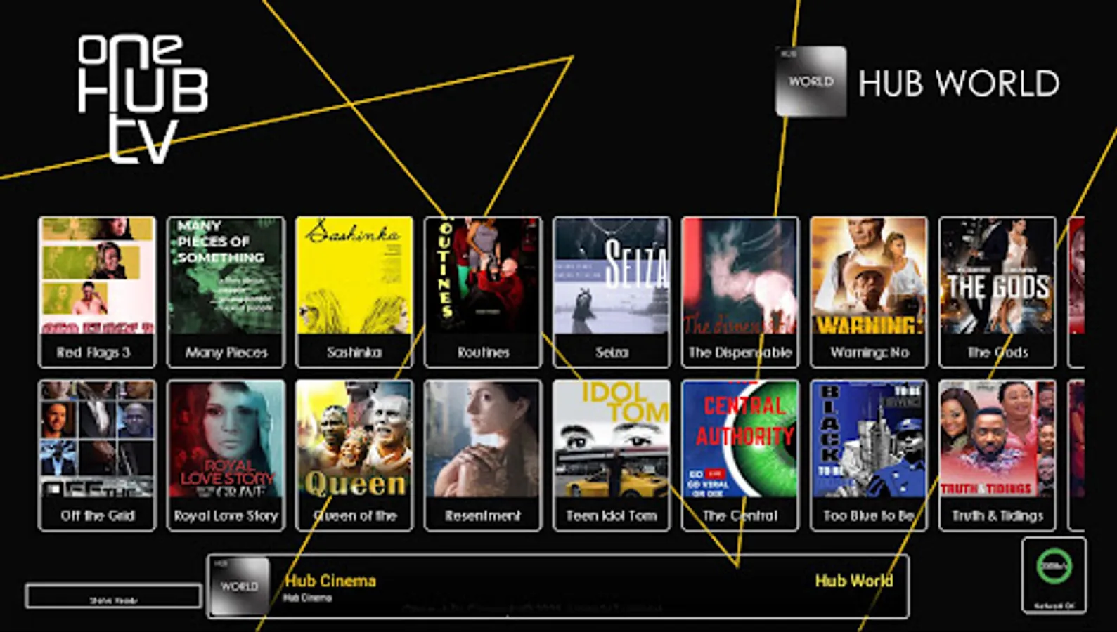 ONEHUBTV content partners, include Times Now, Young Hollywood, Times Now, Mobibase, FilmHub, Bloomberg, Insight TV, OAN Encore, NovoComedy, Island TV, Demand Africa, Alaraby, Syria TV, B4U, Gem TV, Arise News, Planet Eat, Body In Balance, Euro News, Gusto TV, Africa News, and many more. The platform is expanding rapidly and plans to double its content offering which spans across a diverse mix of Movies, Music, News, Sports, Adventure, Health & Fitness, Lifestyle & Travel, Fashion, Educational, and Kids content, before Christmas.