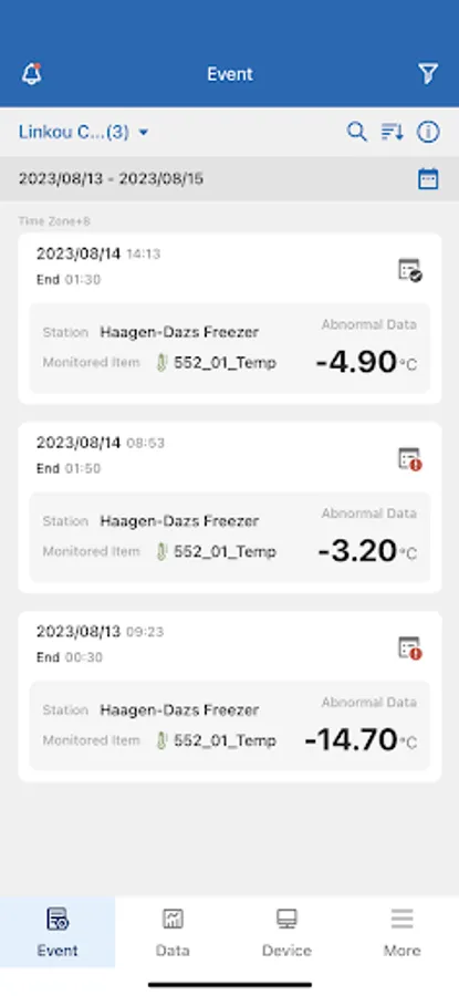 User can register devices, manage events and view monitored data by iService Cold Chain app.