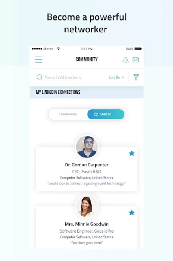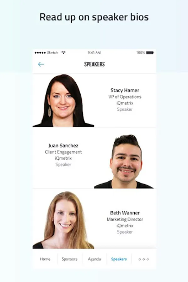 - Speaker and attendee profiles so you know who you'll be learning from and connecting with.