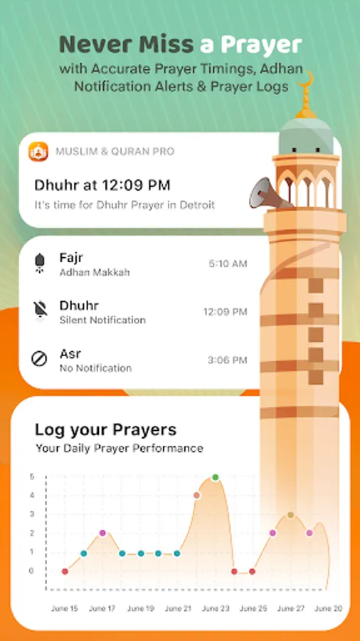 • Accurate & verified Prayer Timings calculated for your exact geographical location.