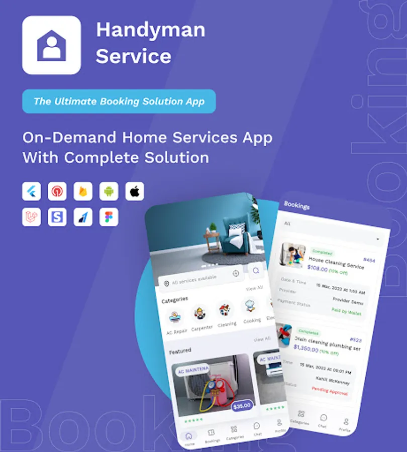 The provider in this Booking Service app can assign the booking to Handyman and accelerate the service. This Booking Service system app comes with a Laravel PHP admin panel to have a meaningful insights from the admin dashboard and statistics. Assign multi-roles and permissions like Admin, Service Provider, Handyman, and customers using this app. Additionally, this Booking Service app supports Multiple Language/ RTL support. This customizable, ready to use app comes with light as well as dark theme support and push notification to engage with clients in a more interactive way.