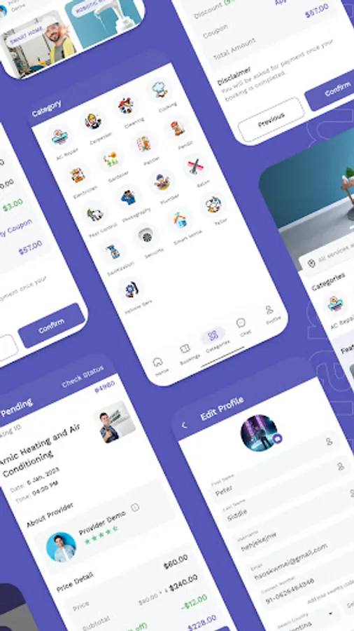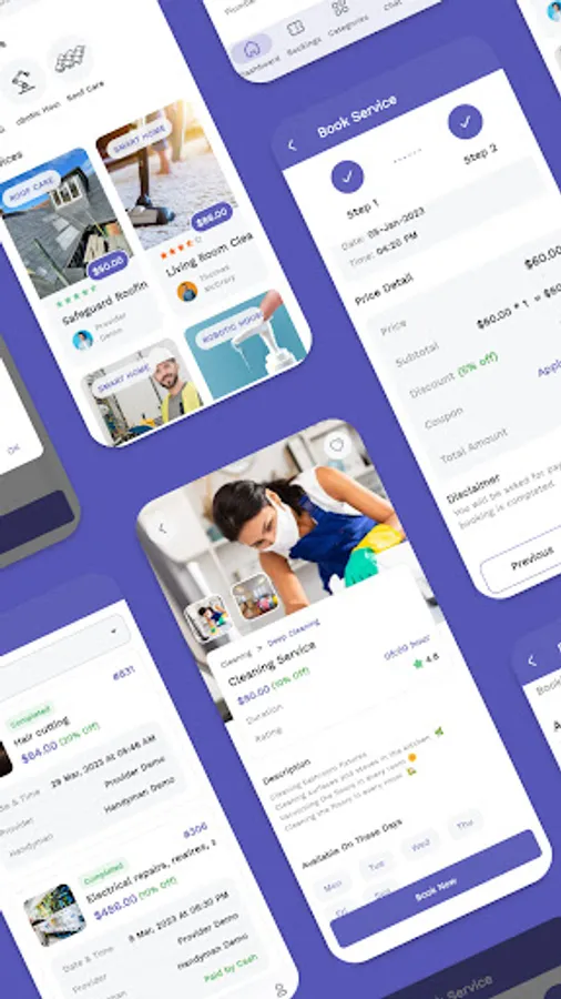 Launch your own mobile-based online booking service with Booking Service mobile app. The customizable templates of this amazing app can quickly let developers to set up a booking system to accept bookings from clients from anywhere in only a few minutes. With ready to use Sign in page, Sign up pages, Payment methods page, Booking lists, Service Type demo, Handyman detail page, Coupon page, and more, this Booking Service app allows business to have a complete and running booking service system app in no time.