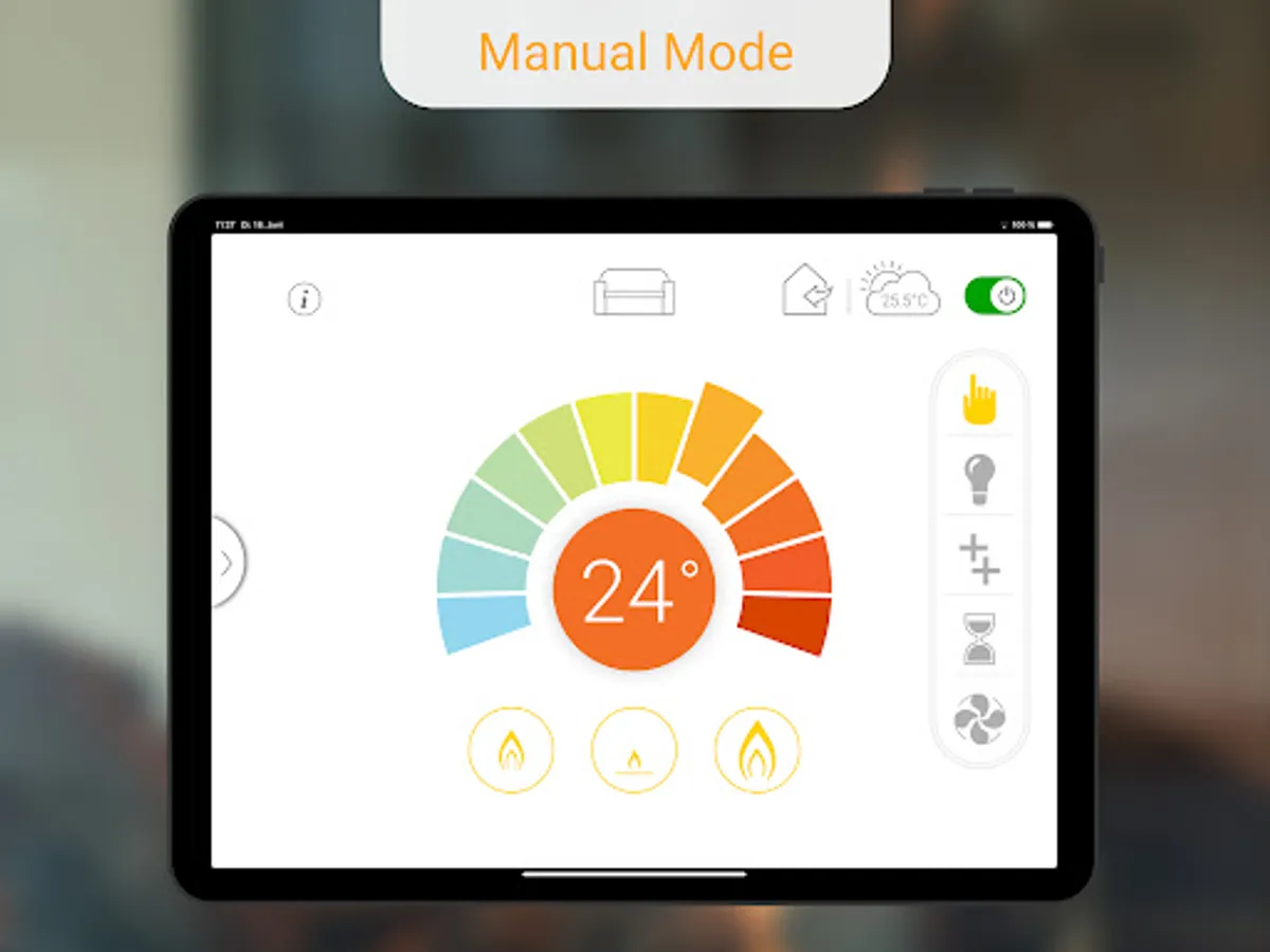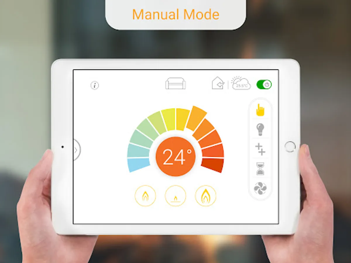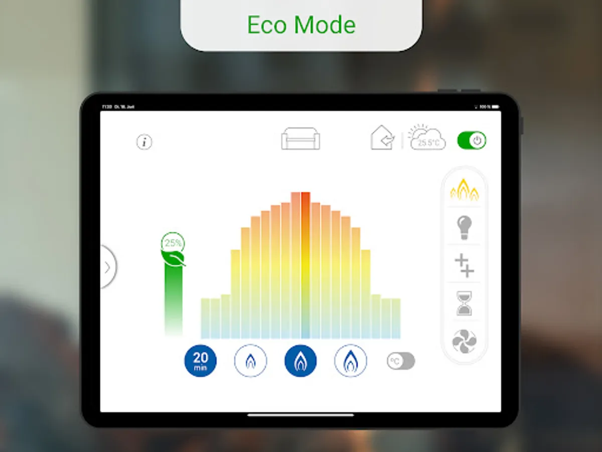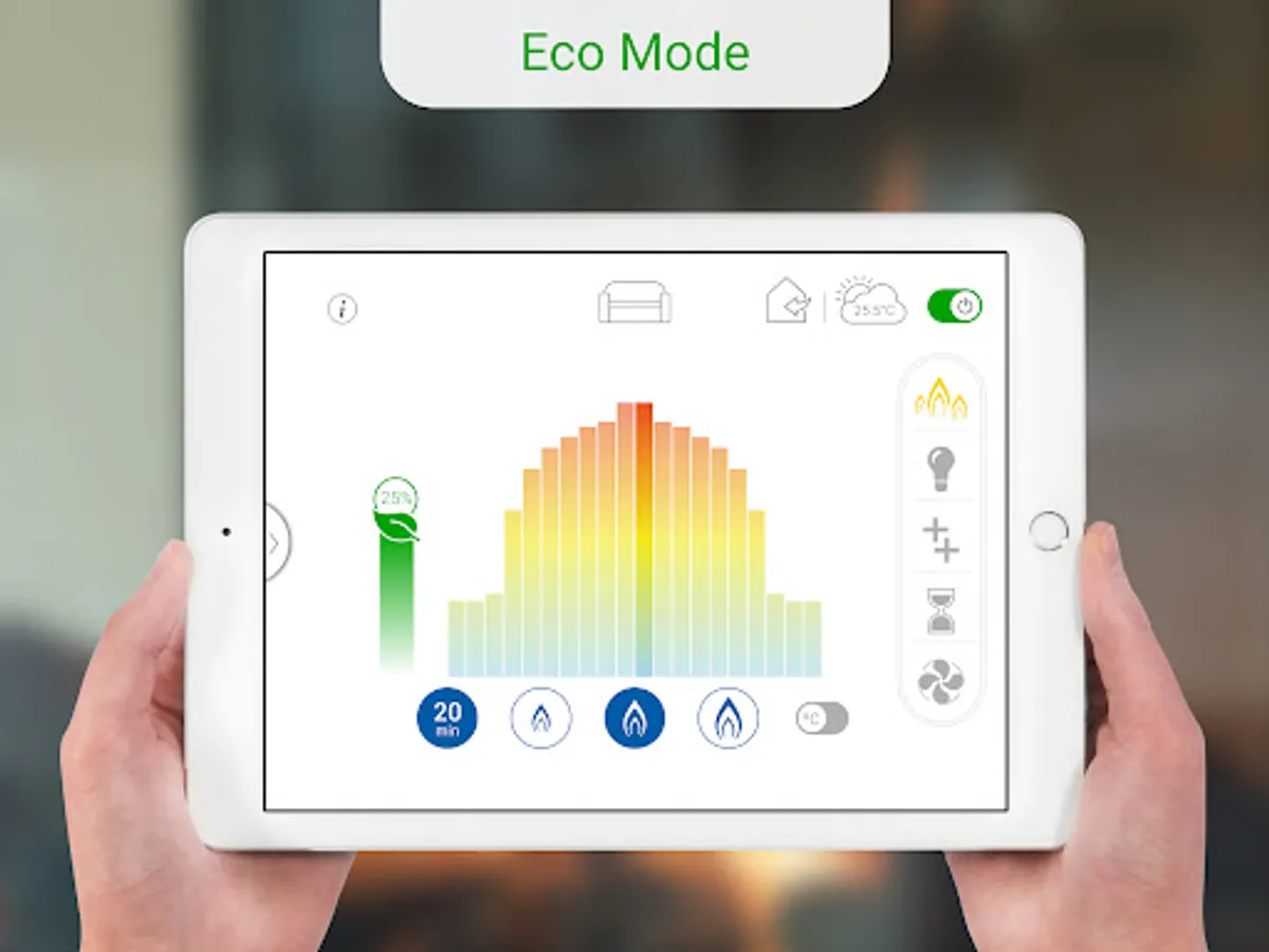 Furthermore, RAISfire offers an energy saving Eco Mode, the auto-comfort Thermostatic Mode, and a Program Mode that allows you set the ON/OFF times and temperatures. And save all your favorite settings using the Profile Mode.