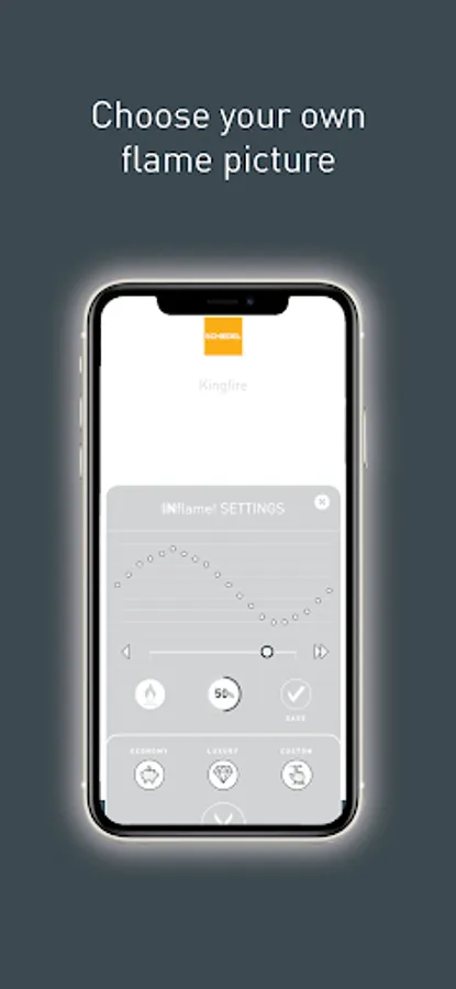 With the app INflame! GAS you can control your Kingfire Gas from the comfort of your sofa. Switch the Kingfire Gas on and off conveniently via your mobile device. Determine the heat output and the lively play of flames according to your wishes and needs. Create and control your own favorite flame pattern. INflame! offers an attractive flame pattern even with less power and ensures a natural modulation of the flames even with reduced power. INflame! is not only beautiful and easy to use, but also very economical. Special features of the APP control INflame!