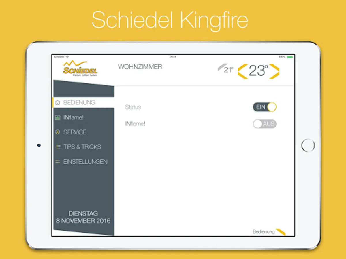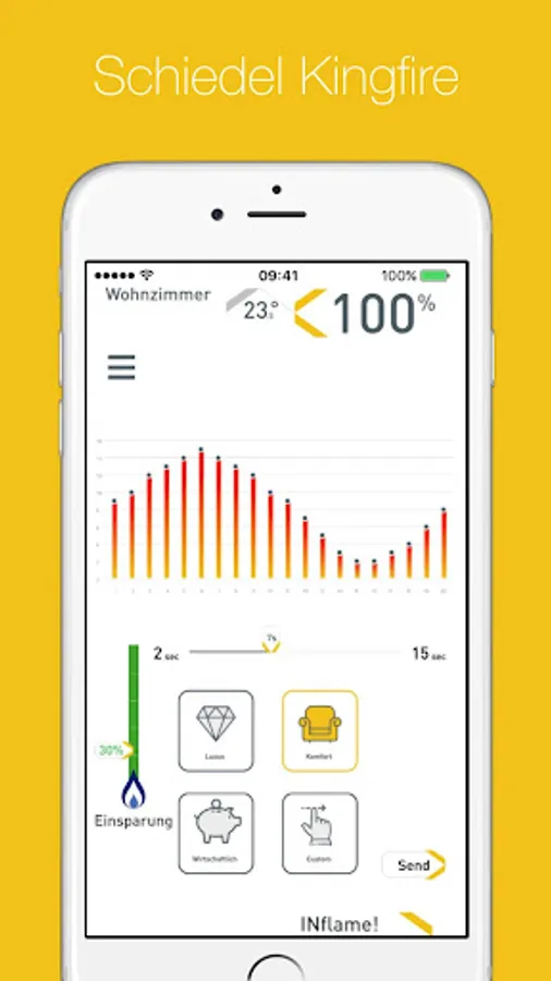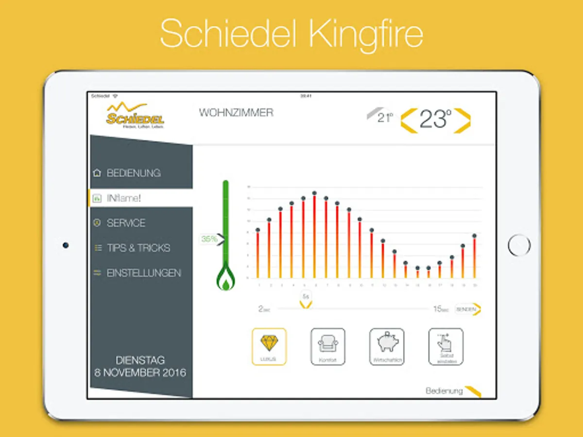 This free Schiedel King Fire app is elegant and very easy to use. With the app you can use up to five fireplaces in your home as well as a user-defined and select three standard flame images. You can adjust and specify your flame as desired how much gas you want to use. If the flames go out, then tells the app what is the problem. In recommendation section you will find useful information on the fire.