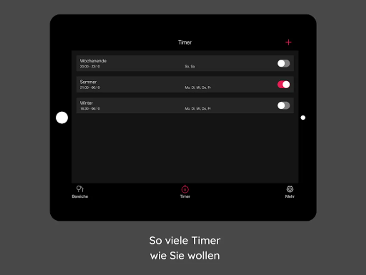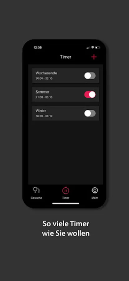 You can create several zones, save your favorite scenarios and then link them to any number of time switches. You can set up a timer for the evening and a separate one for the morning or set the lights to be switched on with the help of the built-in sensor when the sun goes down.