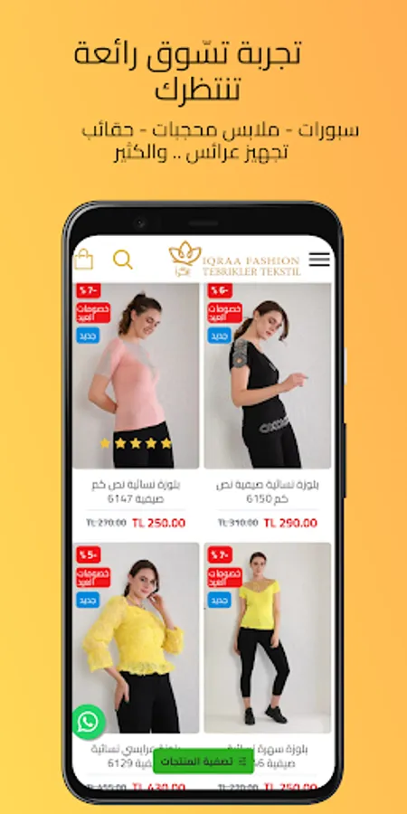 تطبيق أزياء إقرأ - Iqraa Fashion متوفر الآن على الجوال! كل ما تحبيه الآن في موقعنا في متناول يدك. أزياء إقرأ عبارة عن منصة تسوق عبر الإنترنت ممتعة وبأسعار معقولة للغاية توفر موديلات للنساء، بما في ذلك الفساتين، مانطوهات، عبايات، ملابس علوية، سبورات، ملابس المحجبات، تجهيز عرائس، أحذية والإكسسوارات.