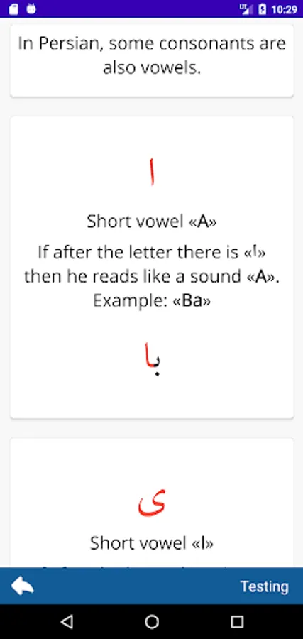 After completing the "Persian alphabet Accent (Dari)" application, you will be able to freely read Persian letters.