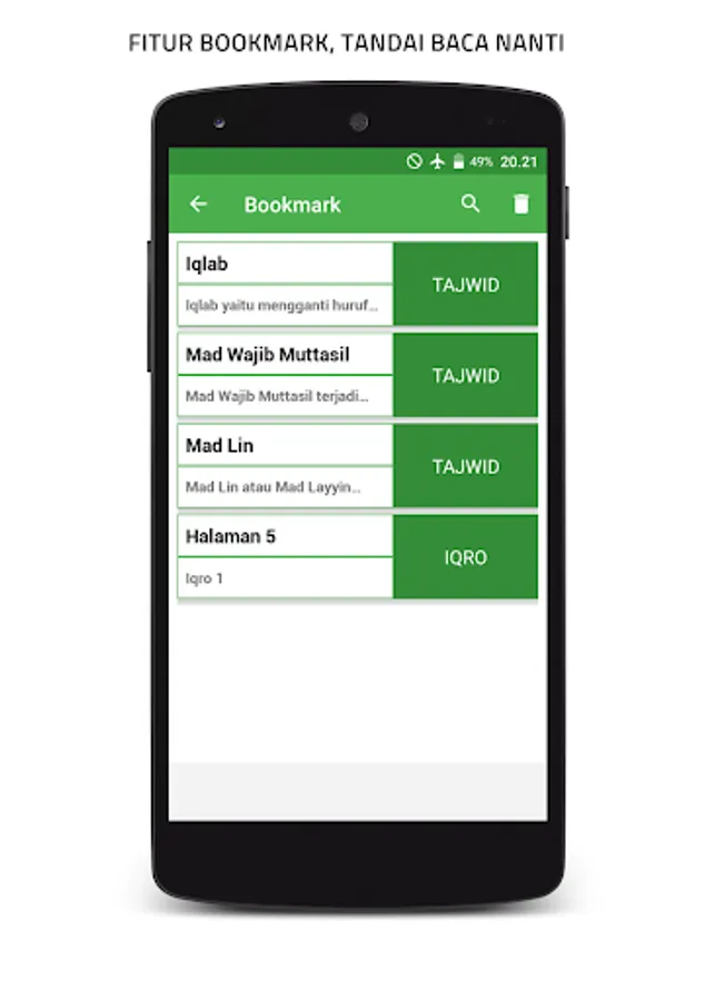 You can also use the bookmark or mark feature, for recitation or iqro reading material that is being read.