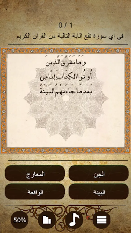 - The application is characterized by the possibility of generating unlimited random questions from the Holy Qur’an, as the application contains at least 15,000 questions.