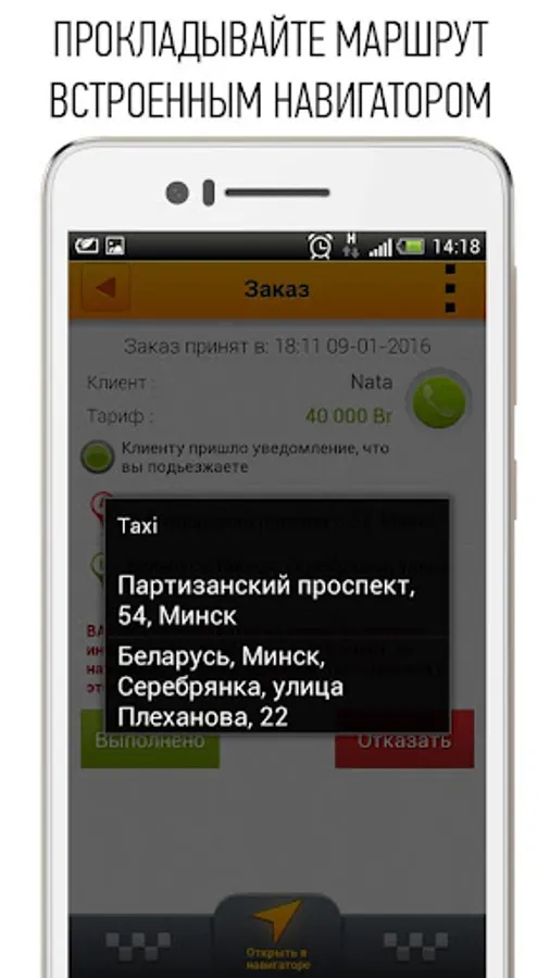 The location tracking function is designed to determine the current location of the driver in order to provide the driver with information about the current requests for the transportation of passengers in the nearest radius of the driver's location. Also, the function of determining the current position of the driver forms the price for the carriage of a passenger, based on the distance traveled by the driver and fixing the points of movement in the process of fulfilling the order.