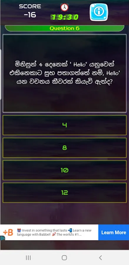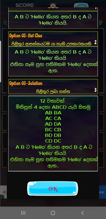 IQ Sinhala is the best app you ever known to improve your IQ level along with the general knowledge. This app is basically in the sinhala language. It contains more than 1000 IQ Sinhala questions in different levels and quizzes categories. Also when you doing the IQ Sinhala questions you can have 3 types of clues to find the answers if the IQ sinhala questions are bit harder for you. Those 3 options include different levels of help. With first option in IQ Sinhala app, you will get a little clue to help you out to think. And in the next option in IQ Sinhala app you will have almost the answer with further help. This option in IQ Sinhala is called as the Hot Clue. And the 3rd option in IQ Sinhala app is the answer. In here you will be given the method to find the answer for a particular IQ Sinhala question. This IQ sinhala app is absolutely an amazing app where you will find a greater help to improve your IQ in sinhala.