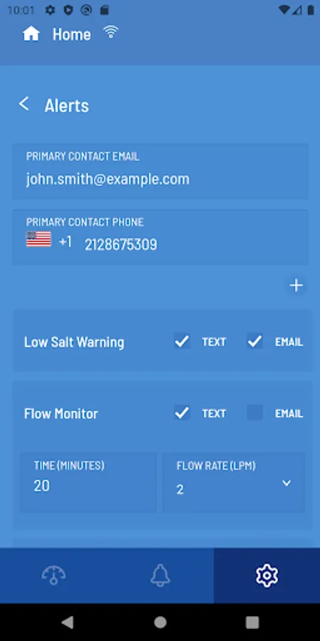 The iQua™ water management tool can be programmed to send alerts via text or email