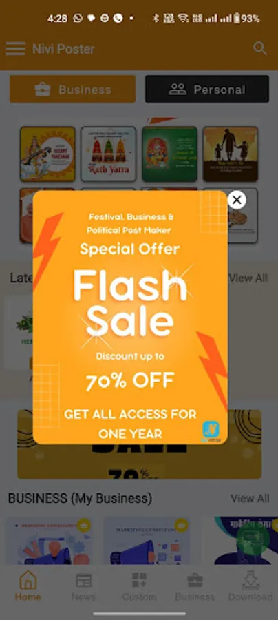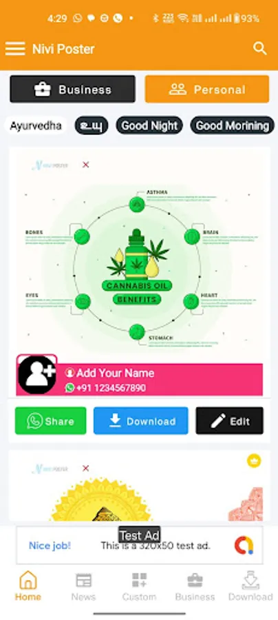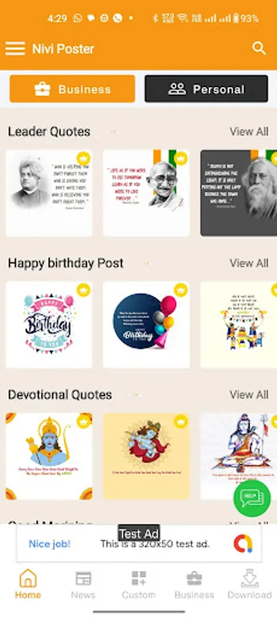 Nivi Poster Maker is an intuitive Android app that empowers users to easily create stunning business, festival, and personal posts. With a user-friendly interface and a plethora of customizable templates, Nivi Poster Maker makes it easy for users to design visually appealing posters without any design experience. Whether you're promoting your business or creating a personalized greeting, Nivi Poster Maker has everything you need to make a lasting impression. With the ability to add text, stickers, and images, as well as adjust colors and fonts, Nivi Poster Maker provides endless creative possibilities. Download Nivi Poster Maker today and start designing eye-catching posters in just a few taps!