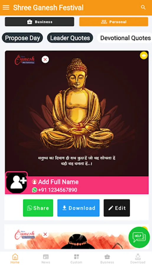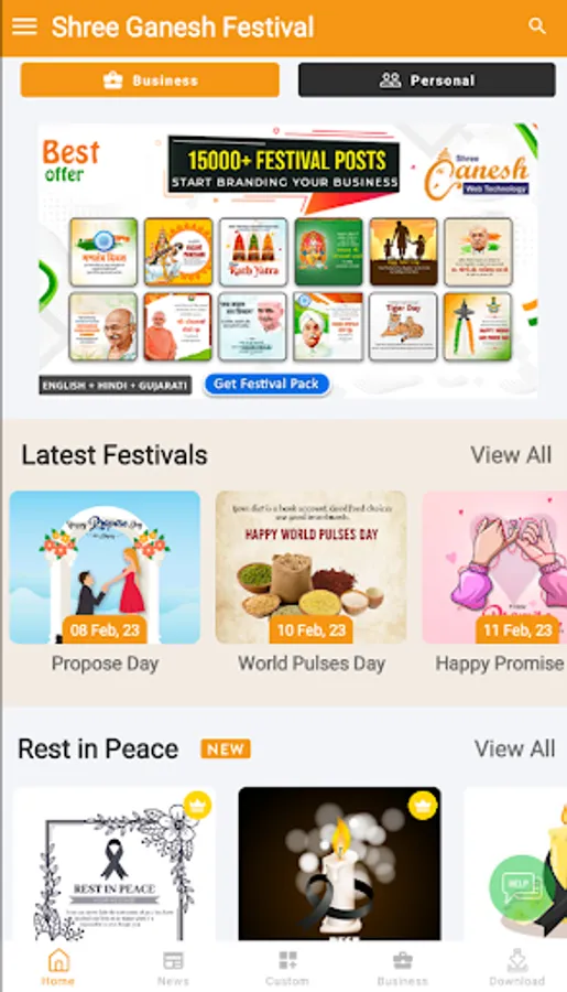 Shree Ganesh Festival Design is a Best Digital Marketing app to promote your business for 365 Days. Save and share images or videos with your business logo & company details.