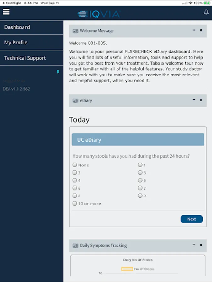 IQVIA’s Patient Flare Check app helps the individuals with symptoms of Cystic fibrosis, Lupus, Ulcerative Colitis (UC) and Crohn's Disease (CD) to track their symptoms, well being, and flare-ups.