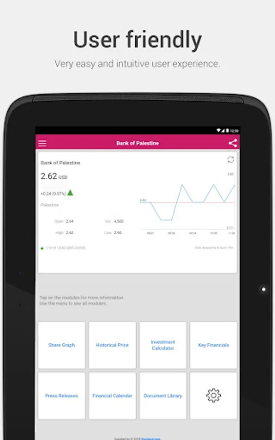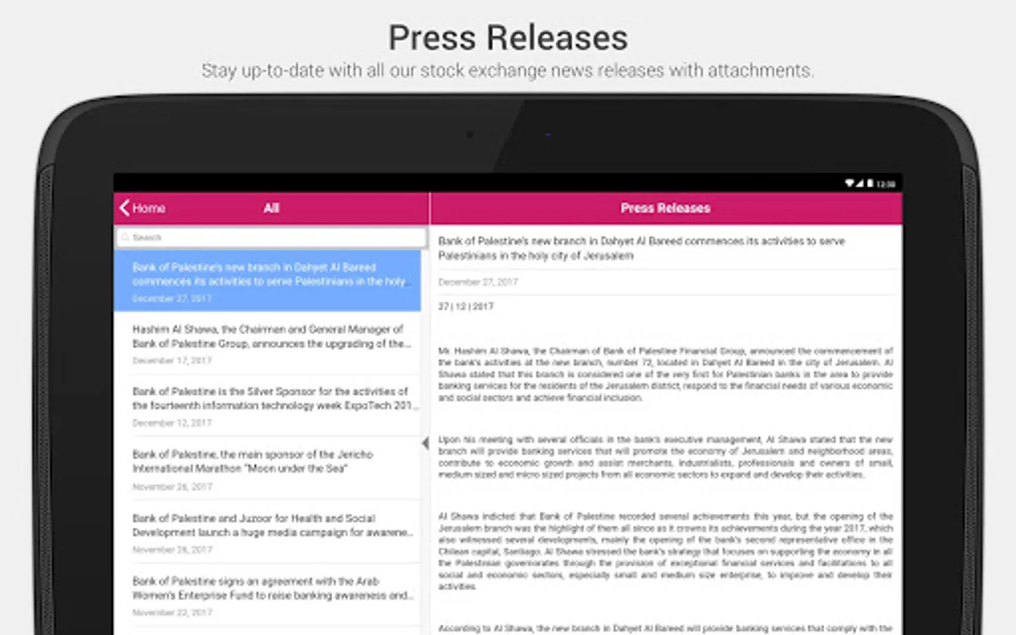 The Bank of Palestine Investor Relations app will keep you up-to-date with the latest share price data, stock exchange news releases, IR calendar events and much more.