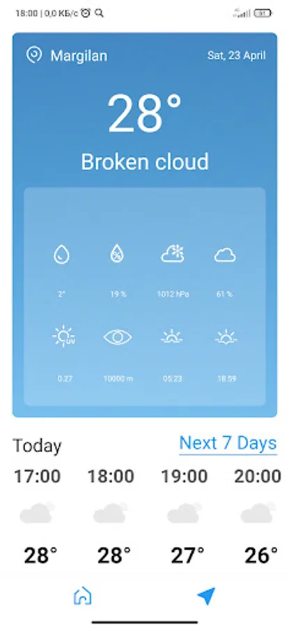 - Возможность получать данные о погоде в зависимости от местоположения устройства.
